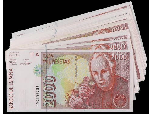 JUAN CARLOS I. Lote 55 billetes 2.000 Pesetas. 24 Abril 1992 (1995). Celestino Mutis. Varias series diferentes. Bastantes en alta calidad. A EXAMINAR. Ed-482Aa. EBC- a SC.