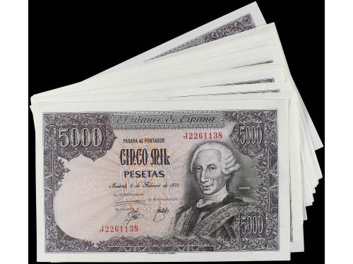 JUAN CARLOS I. Lote 28 billetes 5.000 Pesetas. 6 Febrero 1976. Carlos III. Varias series. Bastantes en alta calidad. A EXAMINAR. Ed-475a. MBC+ a SC.
