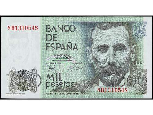 JUAN CARLOS I. 1.000 Pesetas. 23 Octubre 1979. Pérez Galdós. Serie 8B. Numeración especial de estudios estadísticos. RARO. Ed-477c. SC.