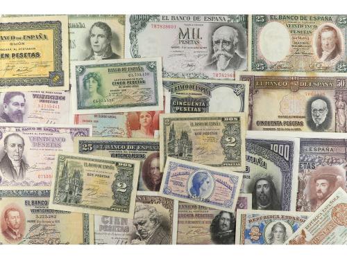 Lote 42 billetes 2 a 1.000 Pesetas. 1926 a 1985. Bastante variado. A EXAMINAR. MBC- a SC-.