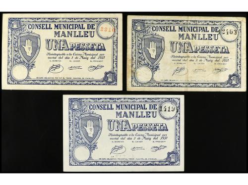 CATALUNYA. Lote 6 billetes 50 Cèntims (3) y 1 Pesseta (3). Maig 1937. C.M. de MANLLEU. AT-1418, 1418a, 1418b, 1419, 1419b, 1419d. MBC a EBC. Ex Aureo & Calicó `Martí Cot II´ - 16 marzo 2022, n. 1054.