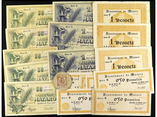 CATALUNYA. Lote 17 billetes 25 y 50 Cèntims (11) y 1 Pesseta (6). Aj. de MATARÓ. Todos del Ajuntament, con variantes y un cartón redondo con sello del Consell Municipal. AT-1487/90. MBC a EBC. Ex Aureo & Calicó `Martí Cot II´ - 16 marzo 2022, n. 1095.