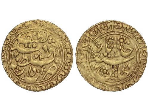 MUNDO ISLÁMICO. Tilla. 1274H. KANATO DE KHOQAND. Khudayar Khan. 3,85 grs. AU. Leyenda con el nombre propio y los títulos del Khan, sayyid khudayar khan. A-3060; Cr-100. MBC+.