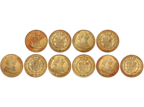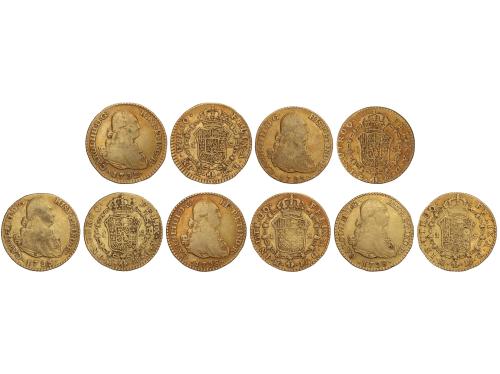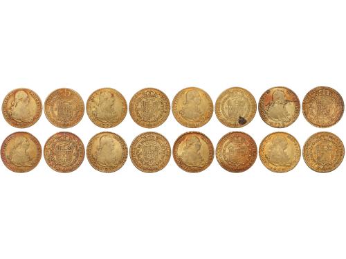 CARLOS IV. Lote 8 monedas 2 Escudos. 1790 a 1807. MADRID. Peso total de 53,46 grs. Todas diferentes. A EXAMINAR. MBC- a MBC+.