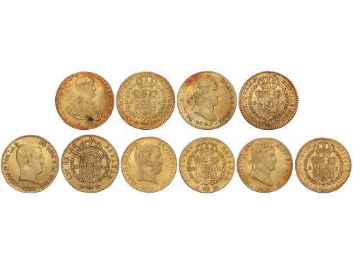 FERNANDO VII. Lote 5 monedas 2 Escudos. 1809 a 1833. BARCELONA, MADRID y SEVILLA. Peso total de 33,57 grs. A EXAMINAR. MBC a MBC+.