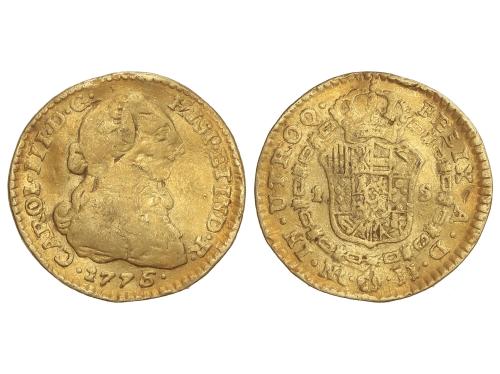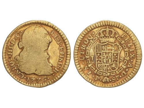 CARLOS III. 1 Escudo. 1776. POPAYÁN. S.F. 3,28 grs. Leve pátina anaranjada. AÑO ESCASO. AC-1419. MBC-.