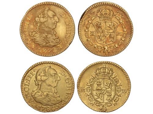 CARLOS III. Lote 2 monedas 1/2 Escudo. 1772 y 1786. MADRID. 1,79 y 1,74 grs. AC-1256, 1280. MBC.