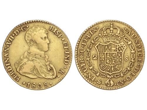 FERNANDO VII. 2 Escudos. 1809. SEVILLA. C.N. 6,68 grs. Primer busto. AC-1667. MBC-/MBC.