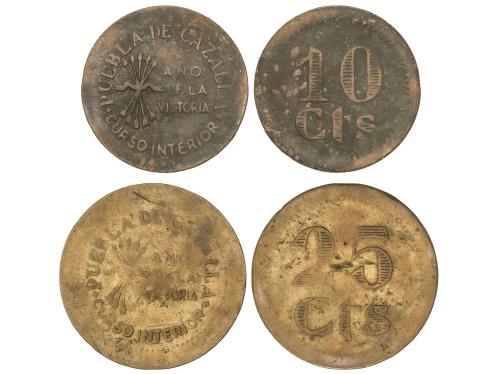 EMISIONES LOCALES GUERRA CIVIL. Serie 2 monedas 10 y 25 Céntimos. PUEBLA DE CAZALLA. AC-47, 49; HG-236/7. MBC-.