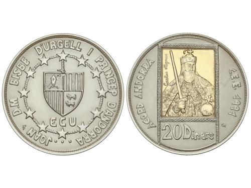 ANDORRA. 20 Diners. 1991. Acuerdo C.E.E. Carlomagno. En estuche original, con certificado. KM-72. Tirada: 5.000 piezas. SC.