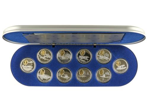 CANADÁ. Serie 10 monedas 20 Dollars. 1990 a 1994. Homenaje a la Aviación Canadiense. En estuche original con certificados. KM-172/3, 196/7, 224/5, 236/7 y 246/7. PROOF.