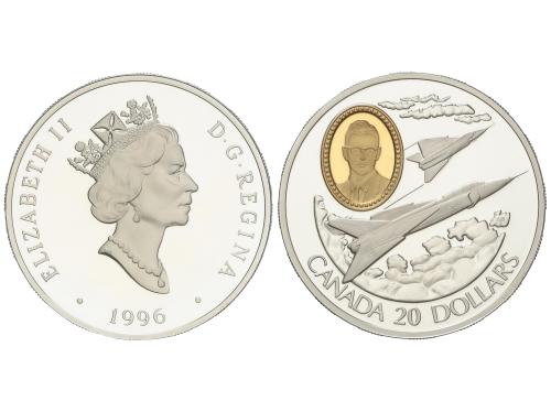 CANADÁ. 20 Dollars. 1996. 31,04 grs. CF-105 Arrow. En estuche con certificado. KM-277. PROOF.