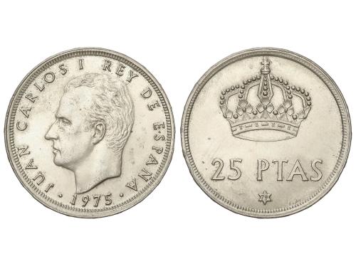 JUAN CARLOS I. 25 pesetas. 1975 (*80). ERROR: Reverso girado 180º aproximadamente. SC.