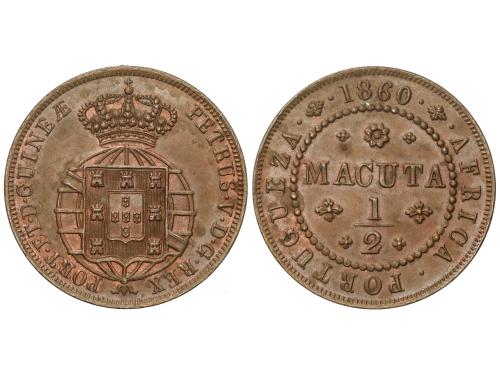 ANGOLA. 1/2 Macuta. 1860. PEDRO V. 18,90 grs. KM-58. EBC.