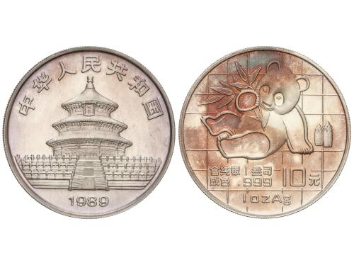 CHINA. 10 Yuan. 1989. 30,91 grs. Cría de panda sobre fondo cuadriculado. KM-A221. FDC.