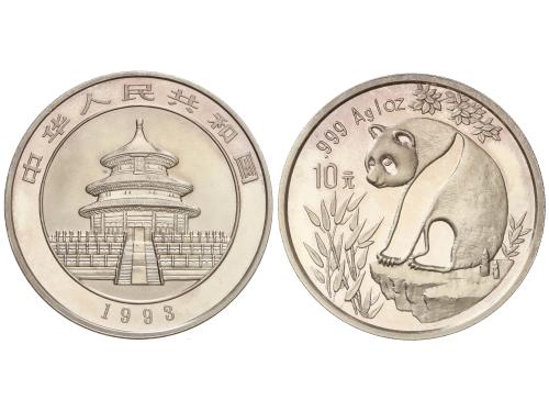CHINA. 10 Yuan. 1993. 31,20 grs. Panda sobre roca plana. KM-485. FDC.
