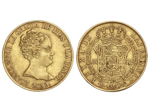ISABEL II. 80 Reales. 1839. BARCELONA. P.S. 6,67 grs. (Leve hojita en anverso). AC-704. MBC+.