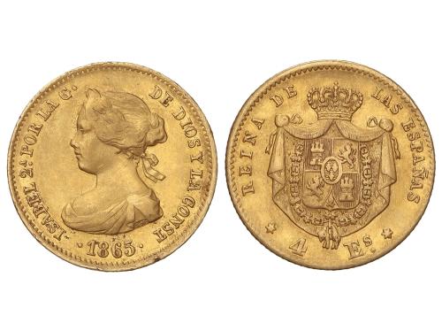 ISABEL II. 4 Escudos. 1865. MADRID. 3,33 grs. (Leves golpecitos). AC-688. MBC.