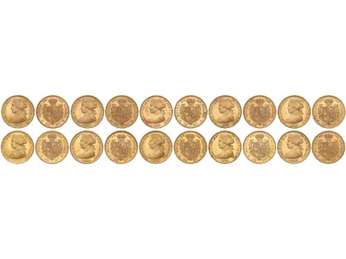 ISABEL II. Lote 10 monedas 10 Escudos. 1868 (*18-68). MADRID. Peso total de 83,75 grs. AC-815. EBC a SC.