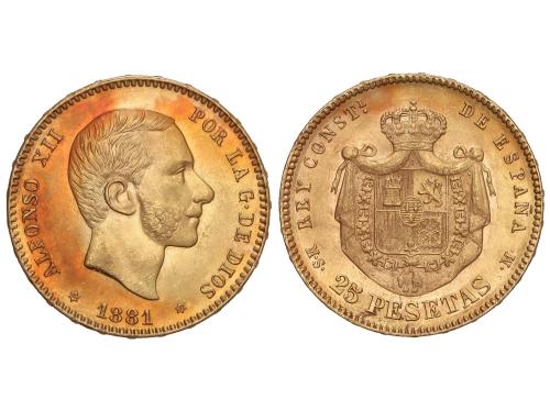 ALFONSO XII. 25 Pesetas. 1881 (*18-81). M.S.-M. 8,07 grs. Pleno brillo original con pátina anaranjada irregular. AC-82. SC.