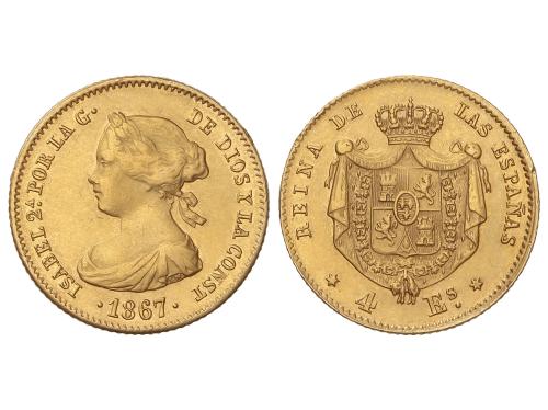 ISABEL II. 4 Escudos. 1867. MADRID. 3,35 grs. AC-691. MBC+.