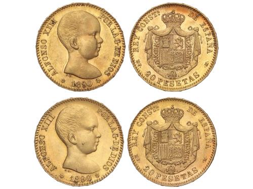 ALFONSO XIII. Lote 2 monedas 20 Pesetas. 1890 (*18-90). M.P.-M. Peso total de 12,89 grs. AC-114. EBC- y EBC.