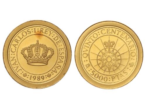 V CENTENARIO. 5.000 Pesetas. 1989. 1,68 grs. Serie I. Rosa de los Vientos. En estuche original, con certificado. HG-641. FDC.