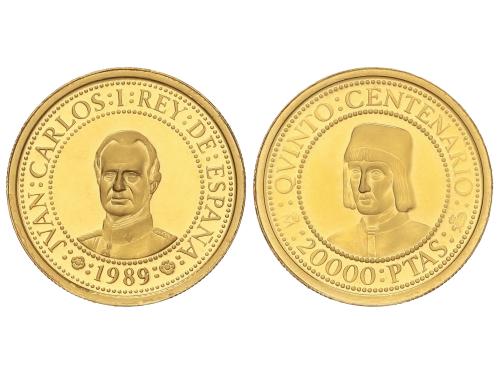 V CENTENARIO. 20.000 Pesetas. 1989. 6,76 grs. Serie I. Pinzón. En estuche original, con certificado. HG-636. PROOF.