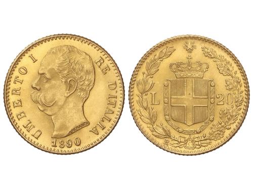 ITALIA. Reproducción 20 Lire. 1890. UMBERTO I. 6,45 grs. SC.