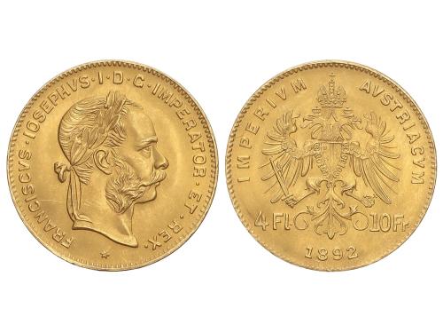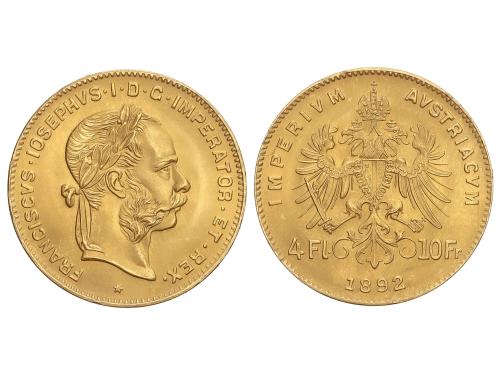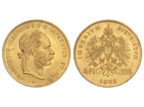 AUSTRIA. 4 Florin-10 Francs. 1892. FRANZ JOSEPH I. 3,22 grs. Reacuñación oficial (Restrike). Fr-503R; KM-2260. SC-.