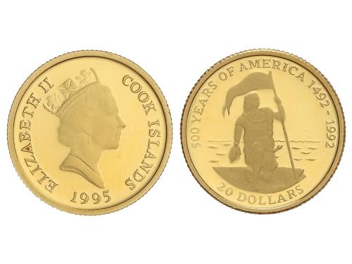 ISLAS COOK. 20 Dollars. 1995. 1,24 grs. Descubrimiento de América: Colón. KM-236. FDC.
