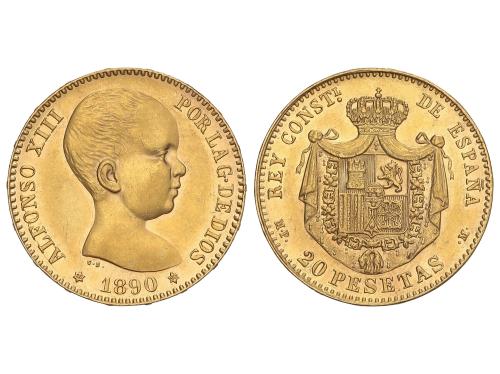 ALFONSO XIII. 20 Pesetas. 1890 (*18-90). M.P.-M. 6,44 grs. (Ínfimas marquitas). Brillo original. AC-114. EBC+/SC-.