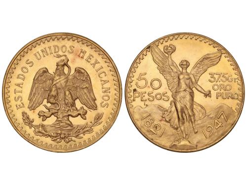 MÉXICO. 50 Pesos. 1947. 41,56 grs. Centenario Independencia. (Leves manchitas). Brillo original. Fr-172; KM-481. EBC/EBC-.