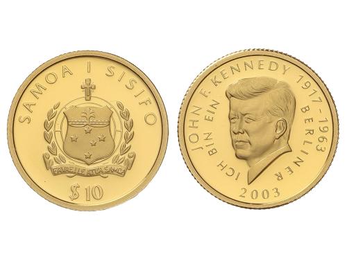SAMOA Y SÍSIFO. 10 Dollars. 2003. 1,24 grs. John F. Kennedy. ESCASA. KM-162. Tirada: 2.000 piezas. PROOF.