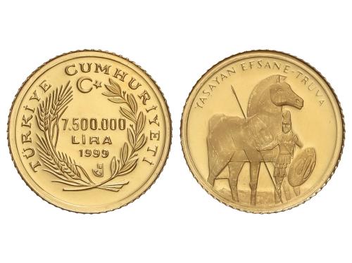 TURQUÍA. 7500000 Lira. 1999. 1,24 grs. Caballo de troya. ESCASA. KM-1187. Tirada: 7.889 piezas. PROOF.