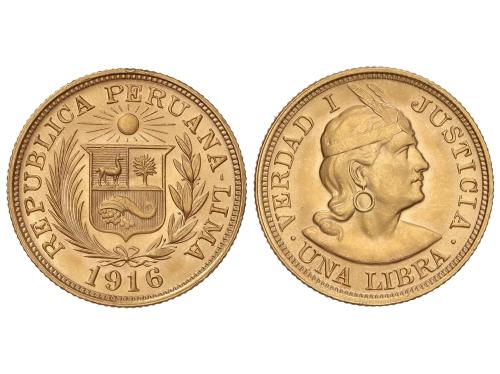 PERÚ. 1 Libra. 1916. LIMA. 7,96 grs. (Leves marquitas). Brillo original. Fr-73; KM-207. EBC/EBC-.