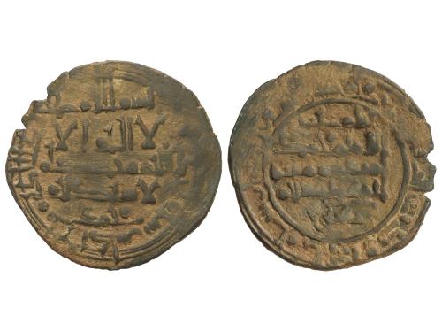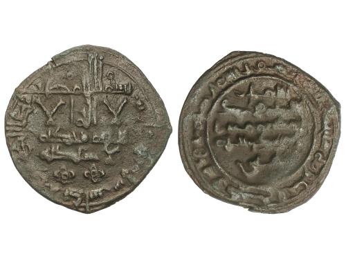 TAIFAS-HAMUDIES. Dirham. 443H. MUHAMMAD AL-MAHDI. AL-ANDALUS. Anv.: Dos elementos florales debajo. 3,20 grs. Pátina oscura. V-864; Prieto-104e. MBC.