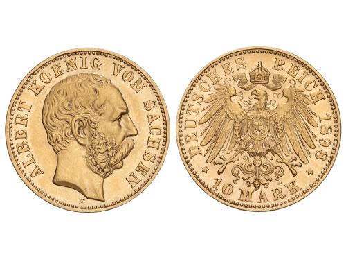 ESTADOS ALEMANES. 10 Mark. 1898-E. ALBERT I. SAXONY. 3,96 grs. AU (900). Restos de brillo original. Fr-3844; KM-1247. EBC.