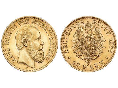 ESTADOS ALEMANES. 10 Mark. 1876-F. KARL I. WURTTEMBERG. 3,98 grs. AU (900). Fr-3873; KM-624. EBC.