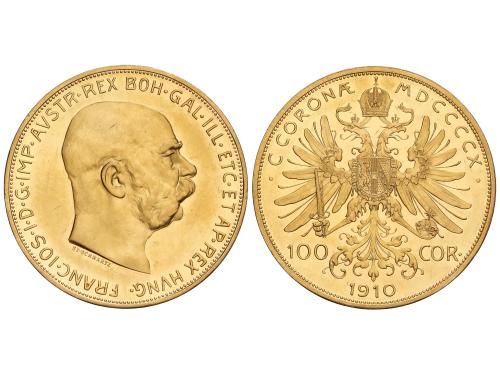 AUSTRIA. 100 Corona. 1910. FRANZ JOSEPH I. 33,85 grs. AU (900). Acuñación de época. Original Strike. (Leves golpecitos). Brillo original. Fr-507; KM-2819. Tirada: 3.074 piezas. EBC/EBC+.
