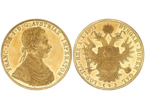 AUSTRIA. 4 Ducat. 1871-A. FRANZ JOSEPH I. VIENNA. 13,90 grs. AU (986). Acuñación de época. (Original Strike). (Pequeñas marquitas). Brillo original tipo PROOF. Fr-484; KM-2274. EBC/EBC+.