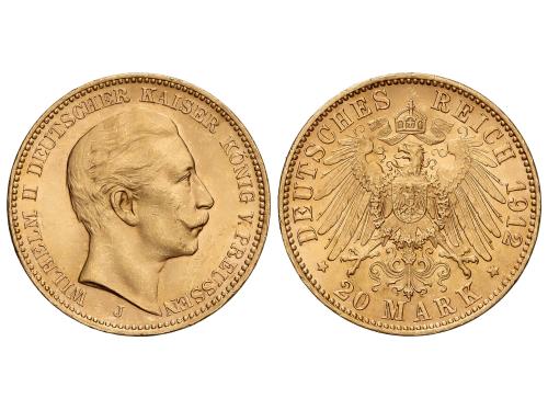 ESTADOS ALEMANES. 20 Mark. 1912-J. WILHELM II. PRUSSIA (Hamburg). 7,96 grs. AU (900). (Leves golpecitos en anverso). Fr-3931; KM-521. MBC+/EBC-.