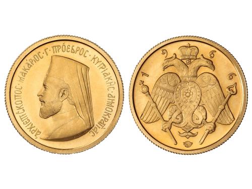 CHIPRE. 1/2 Sovereign. 1966. MAKARIOS III. PARIS. 3,98 grs. AU (917). (Ínfimas rayitas de limpieza). Brillo original. ESCASA. Fr-6c; KM-XM3. SC.