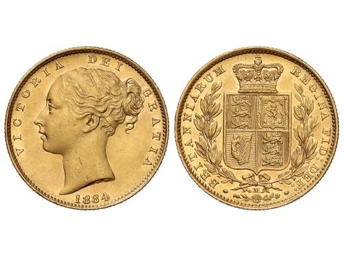 AUSTRALIA. Sovereign. 1884-M. VICTORIA. MELBOURNE. 7,96 grs. AU (917). (Leves golpecitos). Restos de brillo original. Fr-12; KM-6. EBC-/EBC.