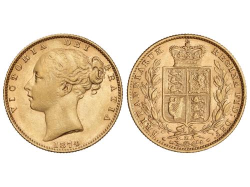 AUSTRALIA. Sovereign. 1874-M. VICTORIA. MELBOURNE. 7,94 grs. AU (917). (Leves golpecitos). Fr-12; KM-6. MBC/MBC+.