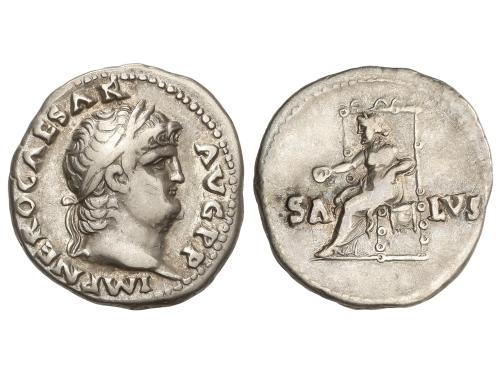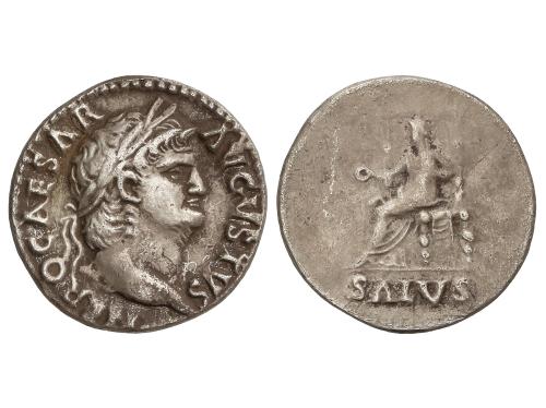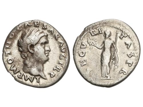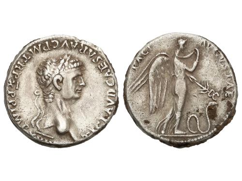 IMPERIO ROMANO. Denario. 41-42 d.C. CLAUDIO. Anv.: TI. CLAVD. CAESAR AVG. P. M. TR. P. Cabeza laureada de Claudio a derecha. Rev.: PACI AVGVSTAE. La Paz-Némesis caminando a derecha sujetando caduceo, precedida por una serpiente. 3,78 grs. (Leves oxidaciones limpiadas). C-51; RIC-10. MBC+/MBC.