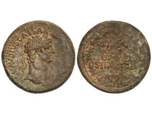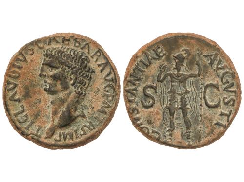 IMPERIO ROMANO. As. 42 d.C. CLAUDIO. Anv.: TI. CLAVDIVS CAESAR AVG. P. M. TR. P. IMP. Cabeza descubierta a izquierda. Rev.: CONSTANTIAE AVGVSTI S. C. Constancia en pie a izquierda con lanza. 11,90 grs. (Pequeñas oxidaciones). Pátina. C-14; RIC-95. MBC+.