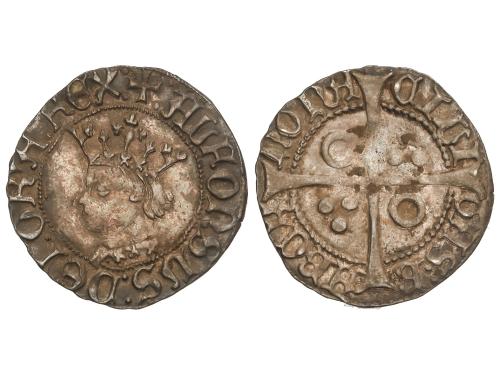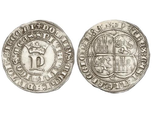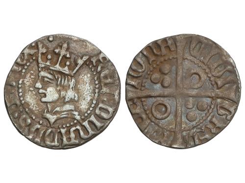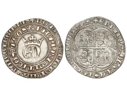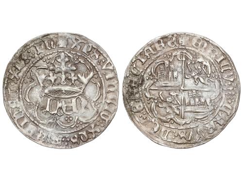 REINO DE CASTILLA Y LEON. Real. ENRIQUE IV. CUENCA. Anv.: XPS VINCIT XPS REGNAT XPS IM:. HEN coronadas. Rev.: ENRICVS CARTVS DEI GRACIA RE. C y cuenco en los extremos del eje vertical del cuartelado. 3,32 grs. (Leves oxidaciones). ESCASA. FAB-710.3. MBC-.