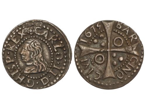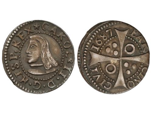 CARLOS II. Croat. 1687. BARCELONA. 2,57 grs. Pátina. AC-210. MBC+.