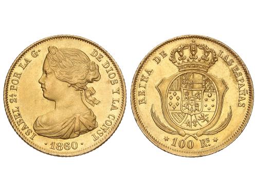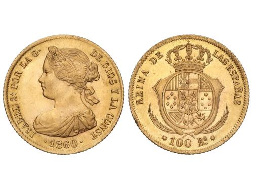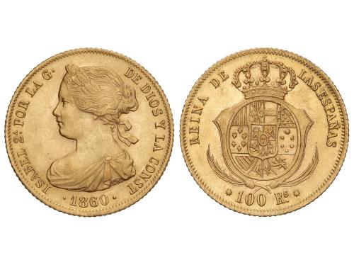 ISABEL II. 100 Reales. 1860. BARCELONA. 8,36 grs. AC-772. EBC-.